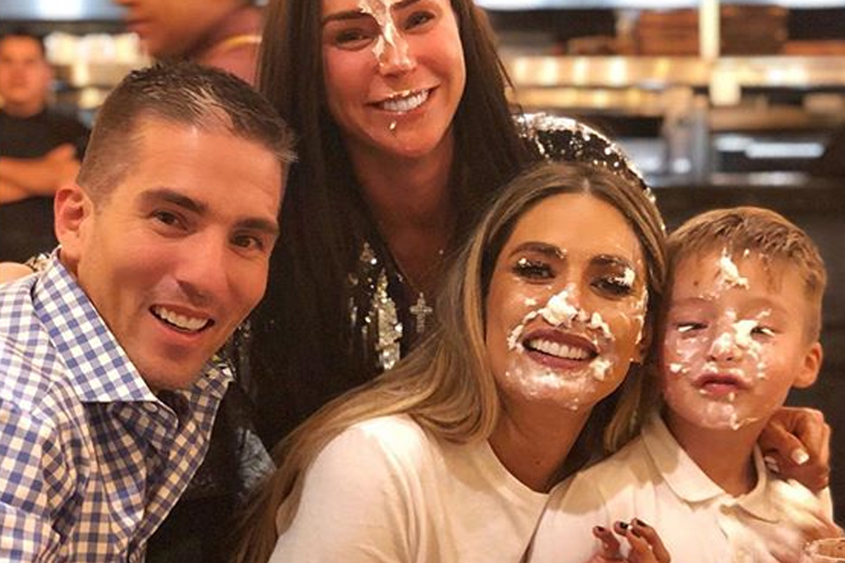 Su hijo Mateo, su esposo y los hijos de Inés Gómez Mont sumaron esfuerzos para estrellar por completo la cara de la conductora en el pastel.