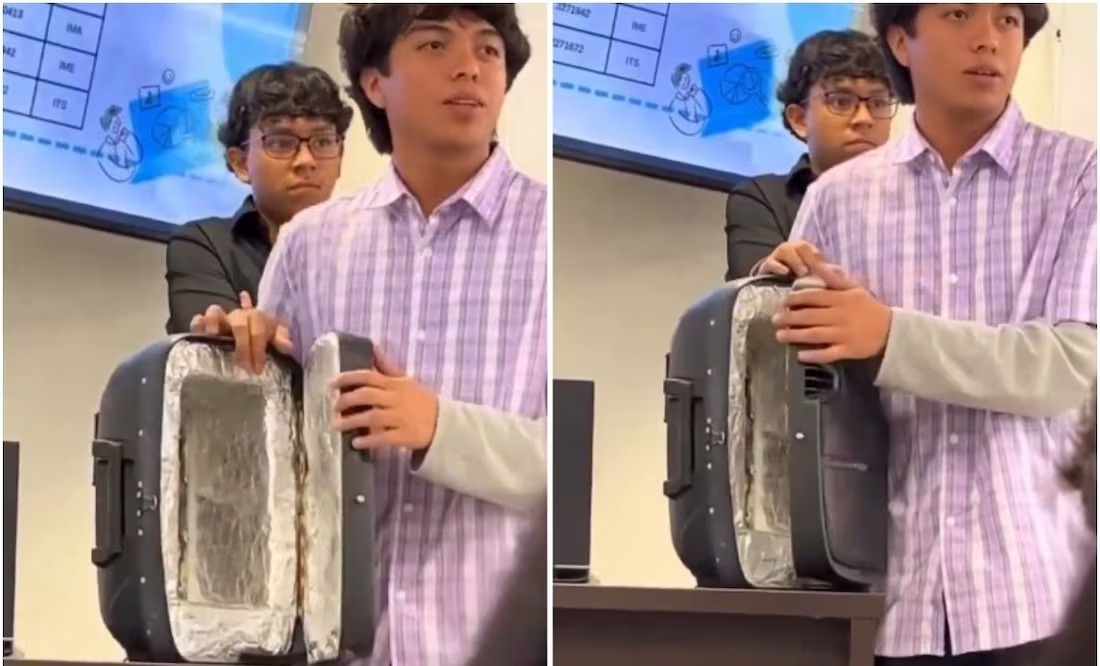El video muestra a un grupo de alumnos de ingeniería del Campus Linares de la Universidad de Nuevo León presentando frente a sus compañeros de clase un proyecto escolar muy peculiar. Dicho proyecto se trataba de una hielera-bocina funcional.