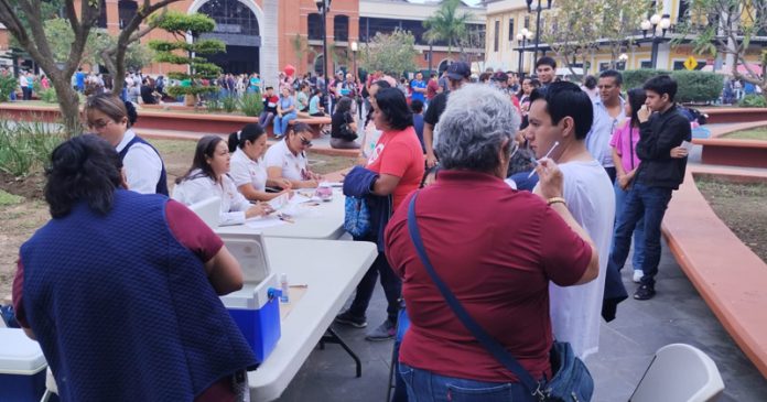 Este domingo 15 de febrero se instaló un macro centro de vacunación contra el sarampión en la plaza Hijas de Tampico al que acudieron decenas de personas de todas las edades; principalmente niñas, niños, adultos menores de 49 años y personas con capacidades diferentes.