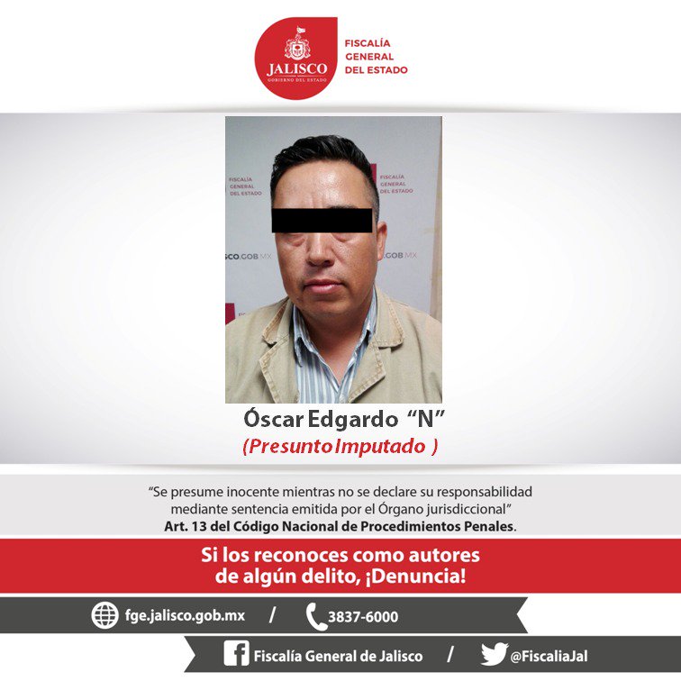GUADALAJARA.- Elementos de la Fiscalía General de Jalisco, cumplimentaron una orden de aprensión en contra de un maestro acusado del delito de abuso sexual infantil; el ahora imputado responde al nombre del Oscar Edgardo, de 39 años de edad.