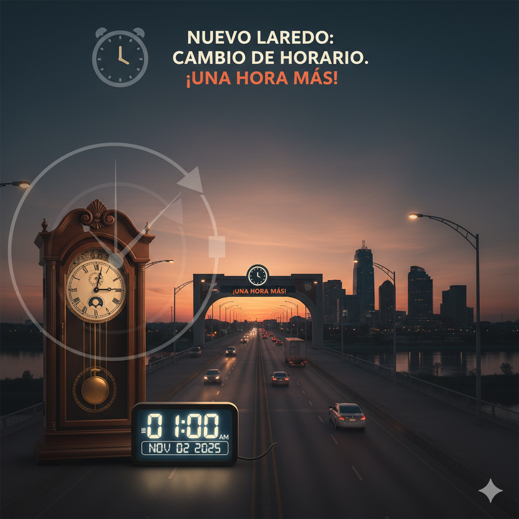 Nuevo Laredo, Tamaulipas.— Tal como estaba previsto, durante la madrugada de hoy, domingo 2 de noviembre de 2025, los habitantes de Nuevo Laredo y otros municipios de la franja fronteriza norte de México realizaron el ajuste a sus relojes, dando la bienvenida al Horario Estándar (o de Invierno).