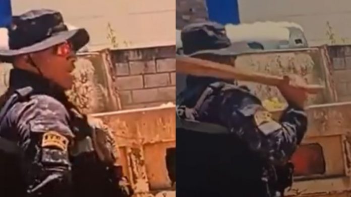 CHIAPAS.- Este martes un elemento de la Fuerza de Reacción Inmediata Pakal fue separado temporalmente de sus funciones luego de que se difundiera un video en redes sociales donde se observa su participación en la detención de un joven en el municipio de Yajalón, Chiapas; a quien golpea con una tabla en la parte trasera del cuerpo mientras se encuentra bajo custodia.