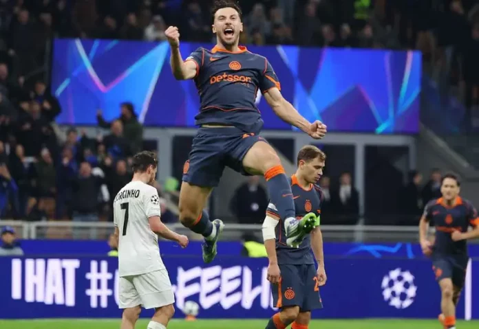 El lateral izquierdo había subido con convicción. Al 67, un rebote fuera del área le dejó la pelota botando, y su zurda trazó una parábola imposible. El disparo se incrustó en el ángulo inferior derecho, el silencio fue inmediato y después vino la explosión. El Inter volvía a respirar.
