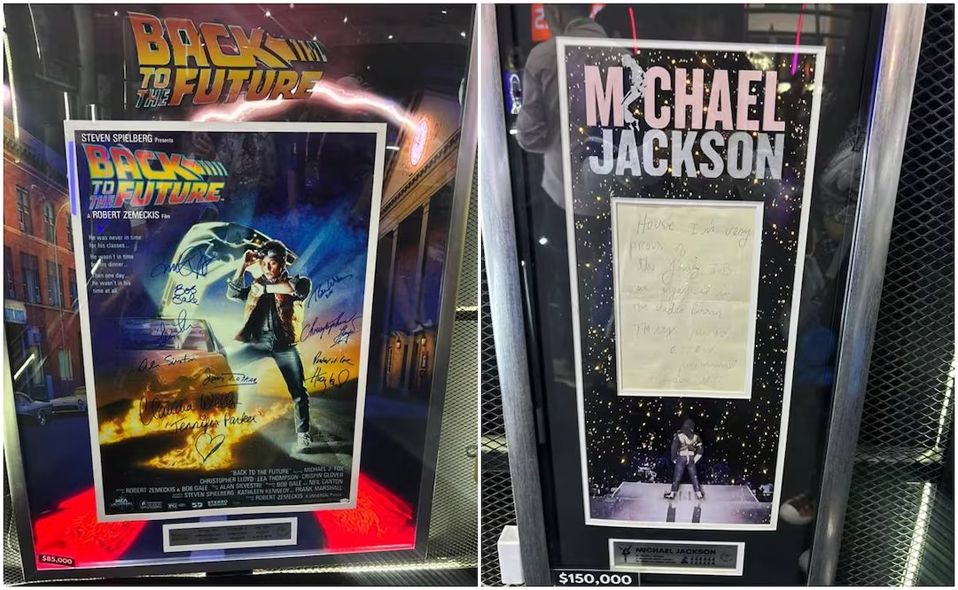 Pero, para los fans del Rey del Pop, una carta firmada por Michael Jackson está en 150 mil pesos y un poster firmado por todo el elenco de “Volver al Futuro” está en 85 mil pesos.