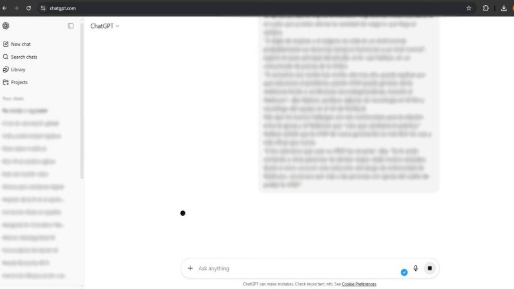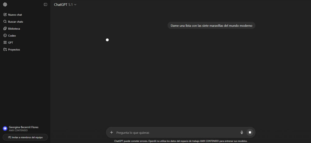 Al momento de entrar al modelo ChatGPT 5.1, la herramienta de inteligencia artificial mostraba el siguiente mensaje en color rojo: