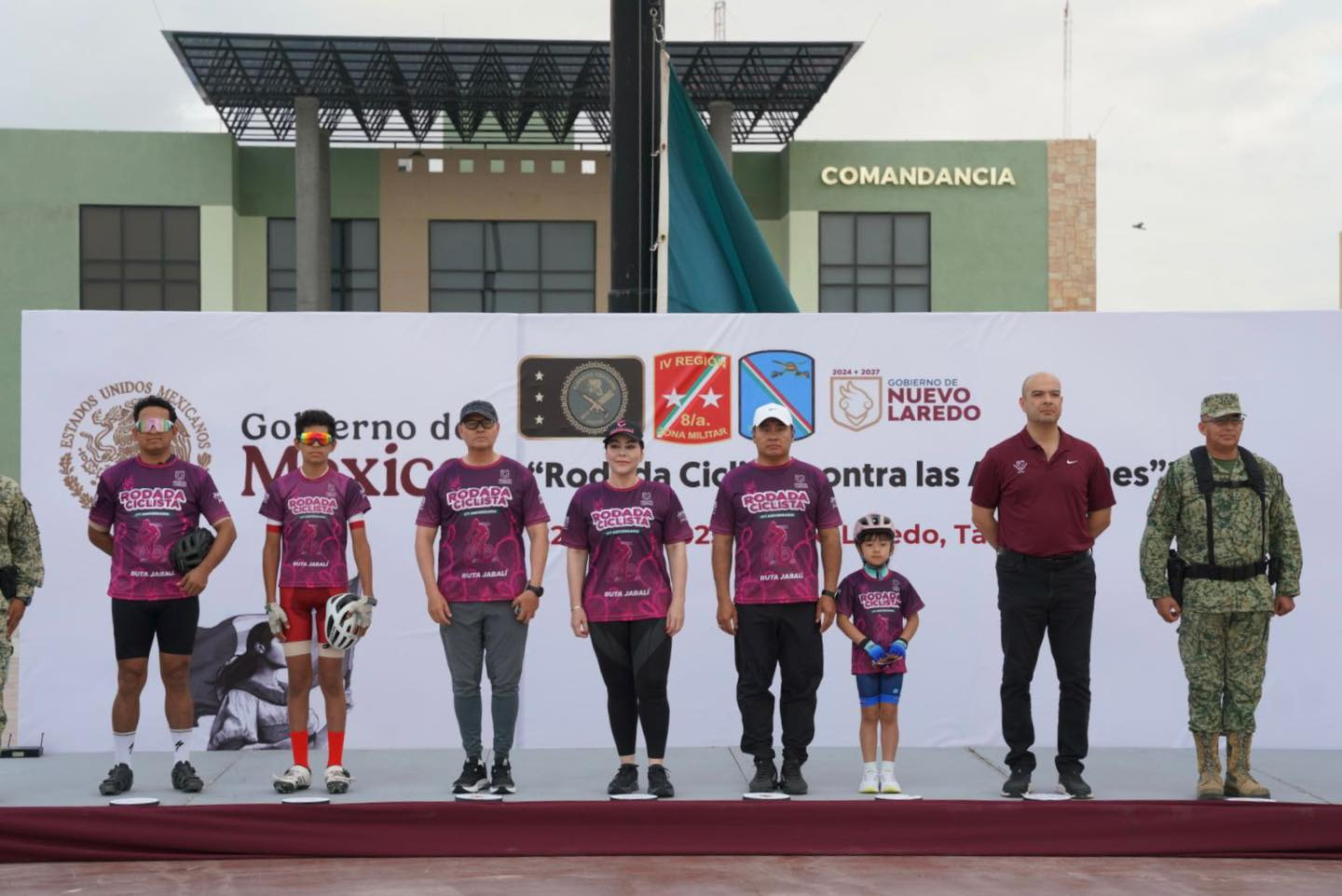 NUEVO LAREDO.- Cientos de ciudadanos, junto a la alcaldesa Carmen Lilia Canturosas; el general de Brigada Diplomado de Estado Mayor, Fernando Colchado Gómez, comandante de la Octava Zona Militar y el Comandante General Brigadier Diplomado Estado Mayor Rolando Solano Rivera, comandante de la Guarnición Militar de Nuevo Laredo, encabezaron una colorida rodada ciclista para celebrar de manera activa el 177 aniversario de la ciudad.