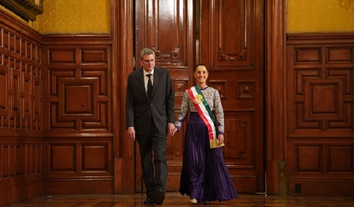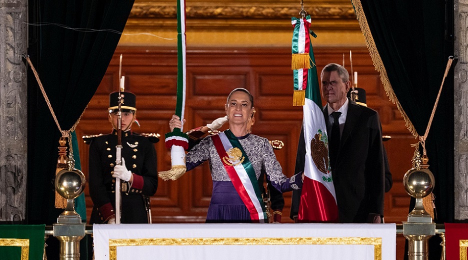 Ante aproximadamente 280 mil mexicanas y mexicanos que se dieron cita en el magno Zócalo de la Ciudad de México, la Jefa del Ejecutivo Federal ondeó en el balcón principal de Palacio Nacional la bandera nacional, que recibió por primera vez en la historia de mujeres militares pertenecientes al Heroico Colegio Militar: de la abanderada teniente de Policía Militar, Jennifer Samantha Torres Jiménez y de la escolta conformada por las cabo de cadetes Samira Michel Delgadillo Chávez; Itzel Sarahi Martínez Tozcano; Karla Paola Guevara Pérez; y las cadetes Andrea Carvajal Audelo y Yetzelany Gallegos Ortiz.