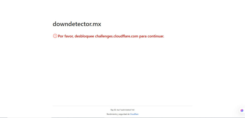 Unos minutos más tarde, refrescó la página web para encontrar que el propio portal de reporte de fallas estaba caído, mostrando el siguiente mensaje: “Por favor, desbloquee challenges.cloudflare.com para continuar“.