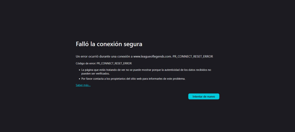Los gamers también presentaron problemas para acceder a League of Legends, aunque en este caso no se presentaba el mensaje que aparece en el resto de páginas web: