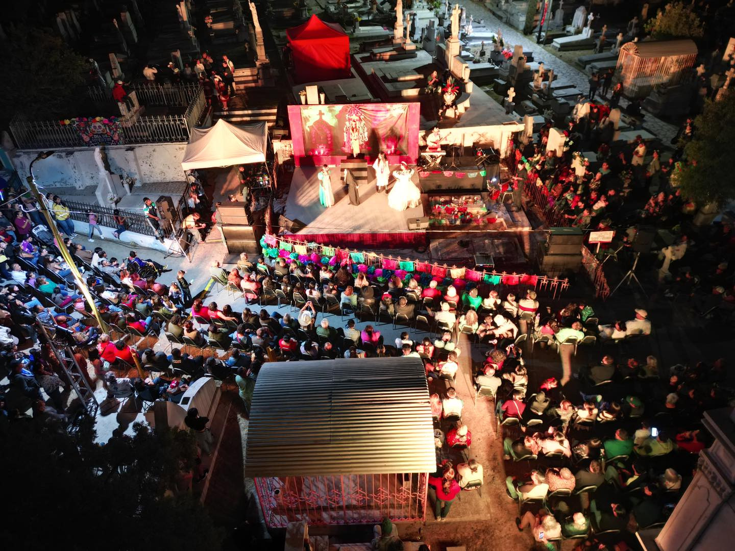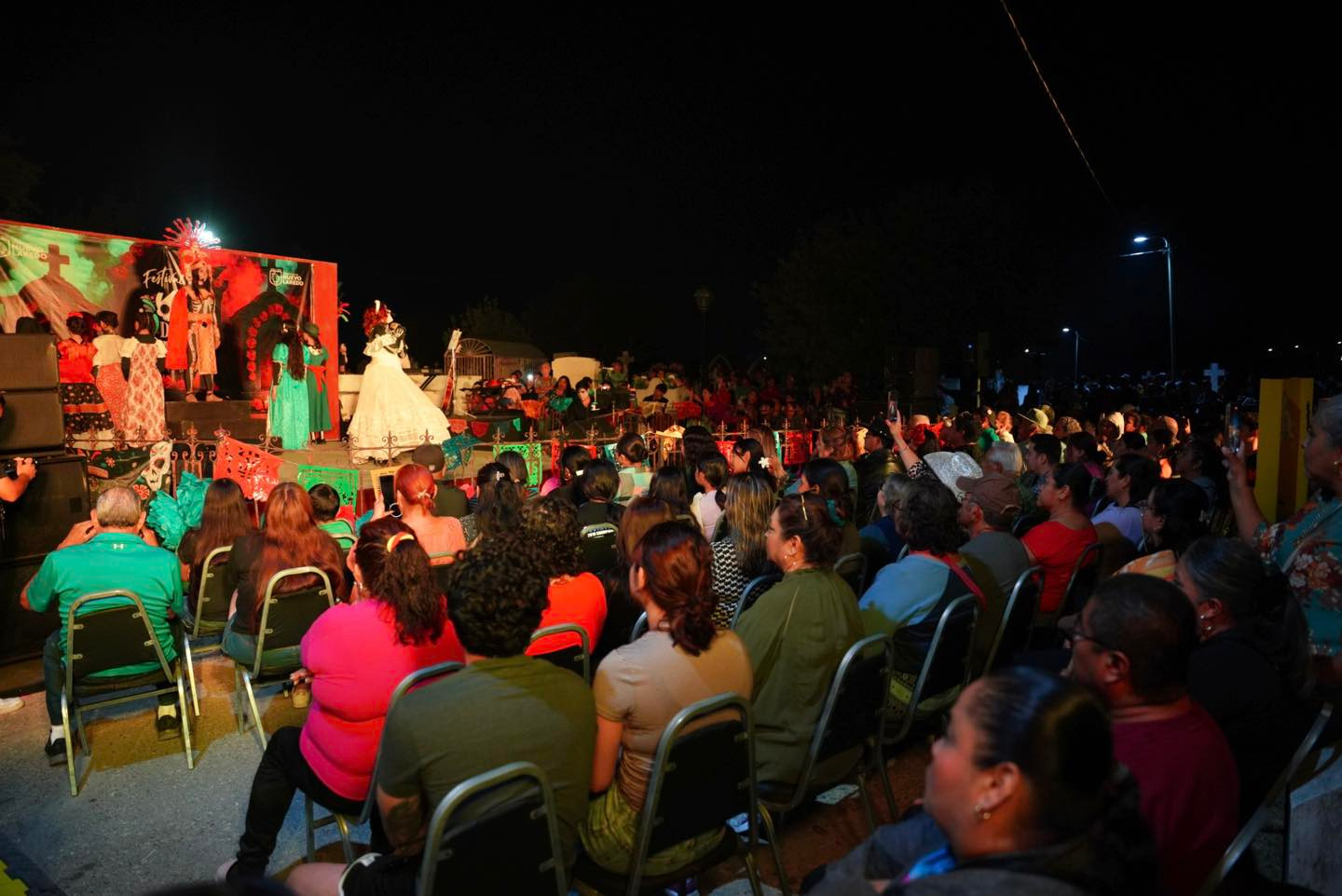 La fiesta inició en el Nuevo Panteón Municipal, ubicado al sur de la ciudad, donde los asistentes, luego de visitar a sus seres queridos, disfrutaron de un espectáculo de baile y canto protagonizado por artistas locales y alumnos de las distintas Casas de la Cultura, quienes ofrecieron un emotivo recorrido por las tradiciones mexicanas que dan vida al Día de Muertos.