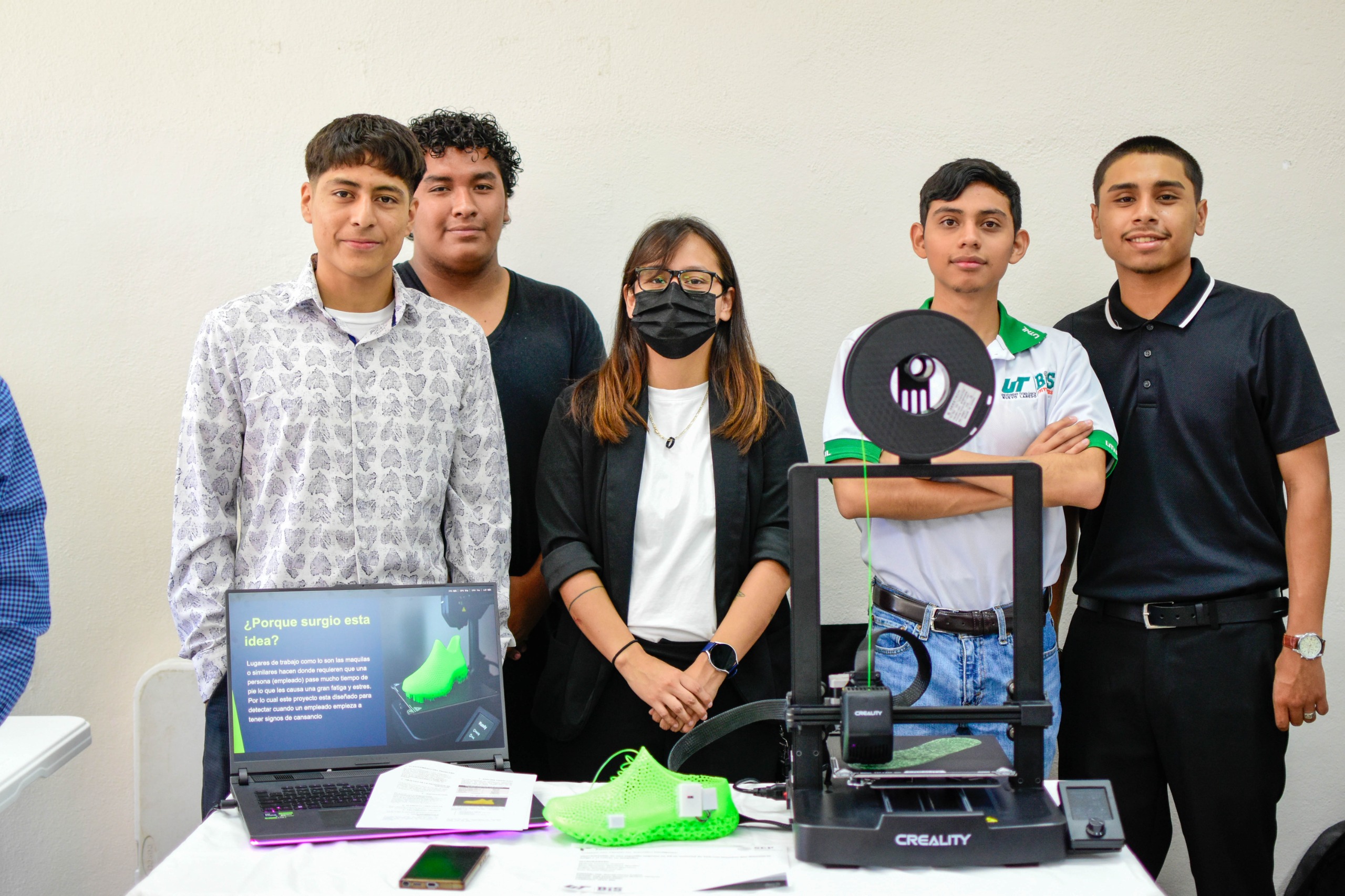 El proyecto fue presentado por los alumnos Melissa Centeno Gómez, Elvis Mauricio Martínez Morales, Ángel Antonio Alviso Martínez, Joshua Trinidad Carrillo y Juan Daniel Palomo, del grupo 2B matutino de la carrera de Mecatrónica Área Automatización BIS, bajo la asesoría de, ingeniero David Corzo López y la tutoría del ingeniero Juan Manuel Muñoz Álvarez, y consiste en una zapatilla impresa en 3D en material de TPU con sensores que detectan la fatiga y el estrés, y que está ideada principalmente para obreros de maquiladoras.