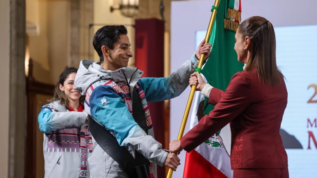 MÉXICO. – La presidenta Claudia Sheinbaum abanderó a los cuatro atletas que representarán a México en las diferentes disciplinas de los próximos los Juegos Olímpicos de Invierno Milano Cortina 2026, que tendrán lugar del 6 al 22 de febrero. Donovan Carrillo fue el encargado de recibir la bandera mexicana en Palacio Nacional.