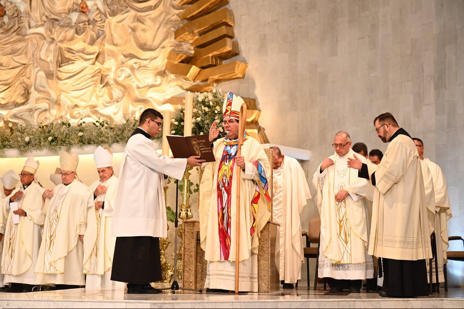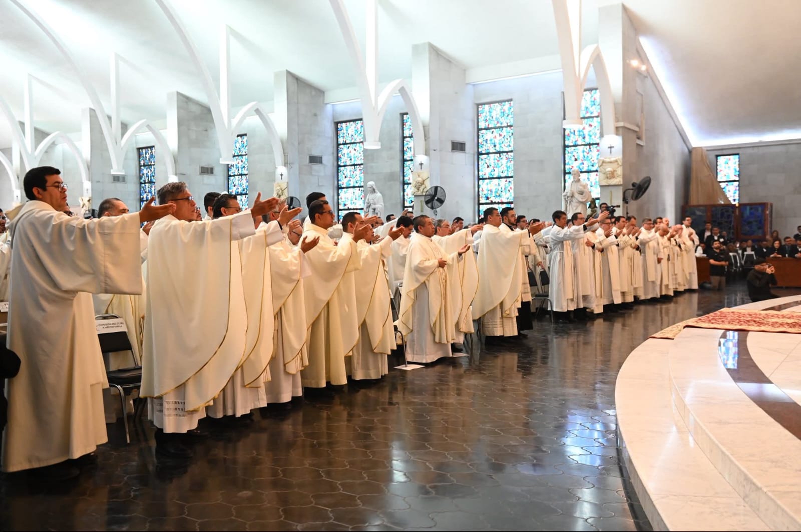NUEVO LAREDO.- Una treintena de obispos de distintas dióciesis y arquidiocesis de la república mexicana, acompañaron a Monseñor Luis Carlos Lerma Martínez, durante su ordenación episcopal y toma de posesión canónica de la Diócesis de Nuevo Laredo.