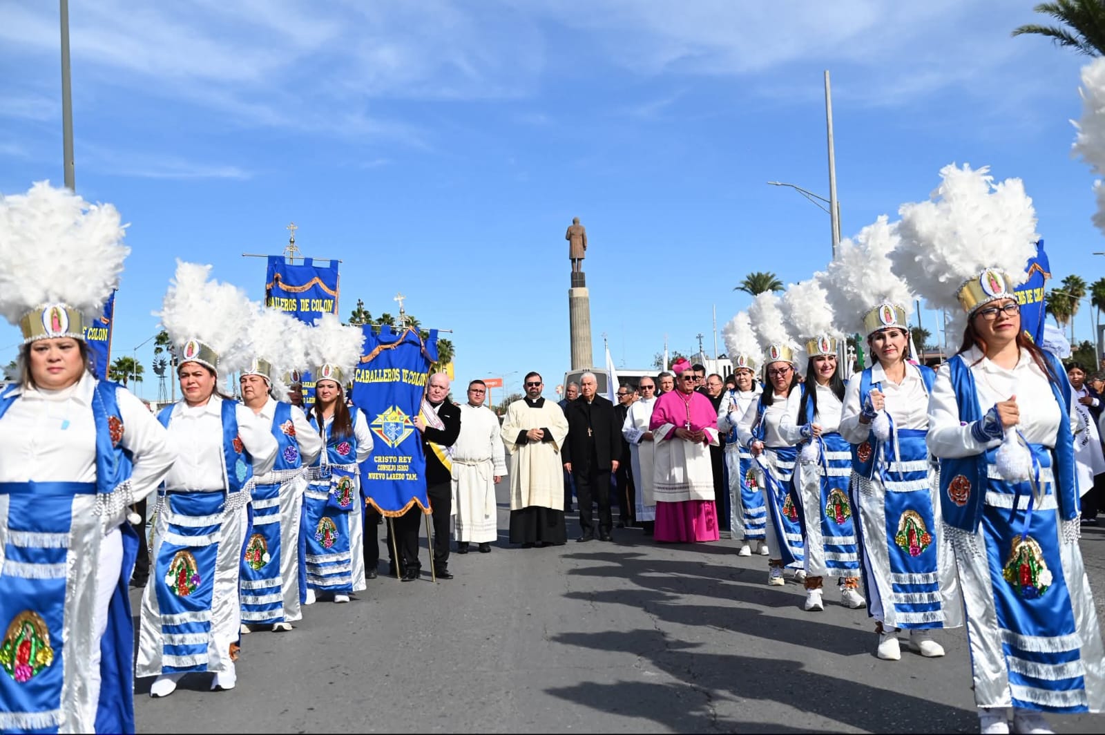 Por la mañana, luego de realizar el juramento de Fidelidad y Profesión de Fe, Mons. Luis Carlos Lerma Martínez se dirigió al Monumento a Benito Juárez, descendió del vehículo que lo trasladó hasta ese lugar para saludar a los feligreses y estudiantes de los Colegios Católicos de Nuevo Laredo, que lo esperan con júbilo y formaron una valla humana para recibirlo.