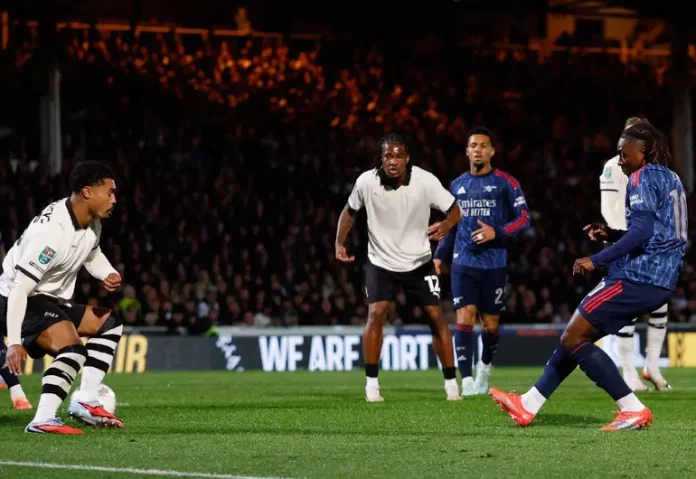 Apenas corría el minuto 8, momento especial para Eberechi Eze, que anotó su primer gol con la camiseta del Arsenal. El talentoso mediocampista recibió un pase de Myles Lewis-Skelly y definió con frialdad para abrir el marcador.
