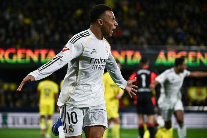 MADRID.- El Real Madrid se puso líder provisional de LaLiga, luego de imponerse 0-2 al Villarreal en el Estadio de La Cerámica, duelo de la jornada 21. Kylian Mbappé está desatado y teniendo una gran temporada, el francés sumó su gol 21 en 20 partidos disputados y es el líder goleador en España.