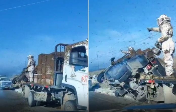 En el comunicado, las autoridades precisaron que el camión transportaba cajones con abejas, por lo que, tras volcar, se produjo el derrame de las cajas, lo que desencadenó en la salida de los insectos alados.
