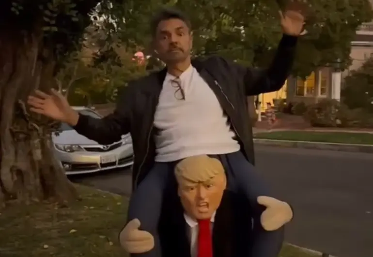 MIAMI.- El actor y comediante Eugenio Derbez volvió a demostrar su ingenio y sentido del humor este Halloween, al compartir en redes sociales su peculiar disfraz que simulaba que Donald Trump lo cargaba. La divertida ilusión óptica provocó una ola de risas y comentarios en línea.