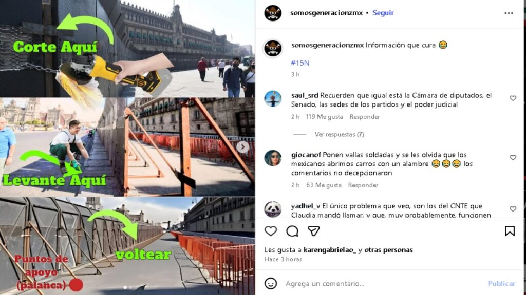 Los organizadores buscan marcar distancia de cualquier acto de violencia o provocación, destacando que el objetivo de la movilización es expresar el descontento de una nueva generación de forma ordenada, pacífica sin causar daños a la ciudadanía o su patrimonio; no obstante, de acuerdo con publicaciones de Instagram, si buscarían romper el cerco que cubre el Palacio Nacional.