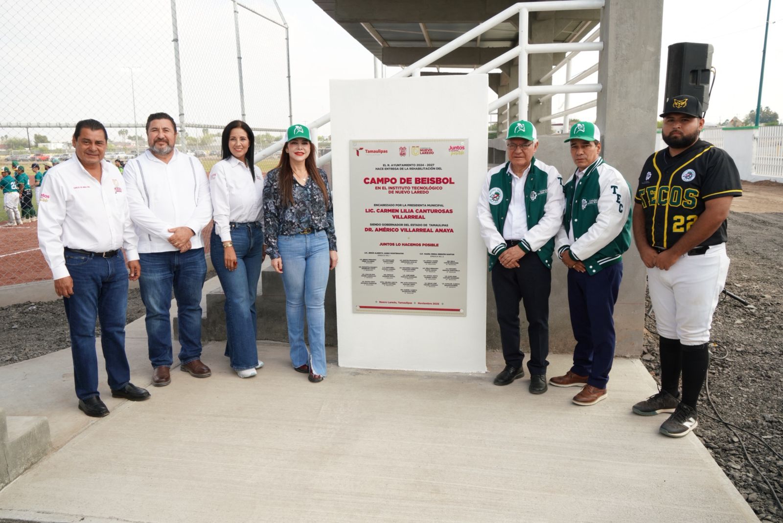 NUEVO LAREDO.-La alcaldesa Carmen Lilia Canturosas Villarreal encabezó la inauguración del renovado campo de béisbol del Instituto Tecnológico de Nuevo Laredo, una obra financiada completamente por el Gobierno Municipal y que marca un precedente en el fortalecimiento de la infraestructura académica y deportiva de la ciudad.