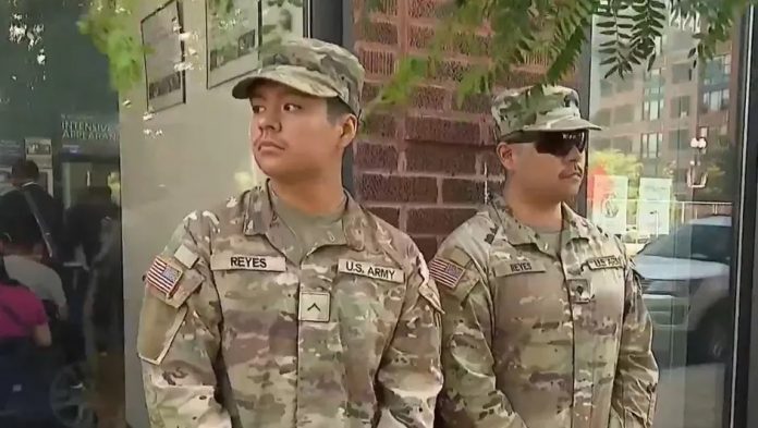 @telemundochicago44 Una inmigrante mexicana y madre de familia, compareció este martes a su cita para registrarse con ICE en Chicago, bien respaldada. Y es que la mujer vino acompañada de sus hijos, Axel y Andrés, ambos miembros de la Guardia Nacional. La familia comentó que les preocupa que su madre haya recibido una cita para comparecer en persona. @SantiagoTelemundo ♬ original sound – Telemundo Chicago