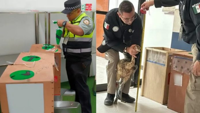 Mediante el apoyo de un binomio canino, elementos de la Guardia Nacional encontraron y rescataron a tres ejemplares de avestruces los cuales iban escondidos en tres cajas de madera para ser transportados a algún punto que por el momento se desconoce.
