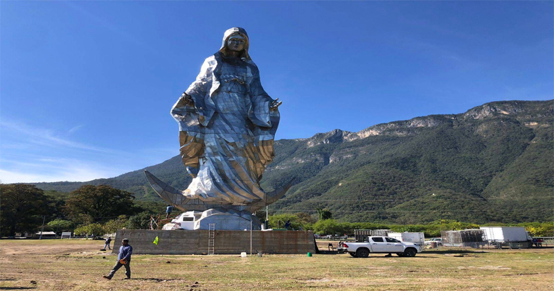 Diseñada por la escultora tamaulipeca Elizabeth Fátima Pesquera Caballero, la imagen partió de un modelo de plastilina de 50 centímetros y, con el trabajo de arquitectos, ingenieros y más de doscientos trabajadores, se convirtió en una estructura de gran escala.