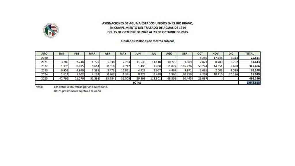 TEXAS.- México no logró cumplir con la entrega de agua que debía enviar a Estados Unidos antes del 24 de octubre de 2025, según lo establecido en el Tratado de Aguas de 1944.
