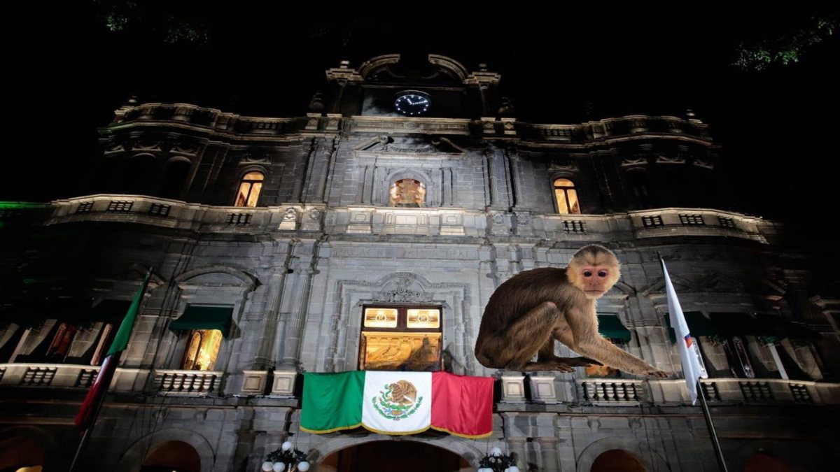 Puebla.- Un mono araña causó revuelo en el centro de Puebla cuando vecinos vieron, la noche de ayer, 29 de octubre, cómo el primate se columpiaba y desplazaba por los balcones del Portal de Iturbide, a un costado del Zócalo capitalino.