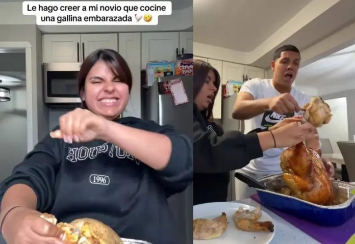 MÉXICO.- Las bromas caseras siguen dominando las redes sociales, y esta vez una pareja conquistó TikTok con una escena tan absurda como ingeniosa. Yashira, usuaria de la cuenta @LaFamiliaGomes, decidió jugarle una elaborada broma a su novio Joaquín, haciéndole creer que había cocinado una gallina embarazada. El resultado: un video viral que acumuló miles de reproducciones, comentarios y carcajadas de usuarios en toda la plataforma.