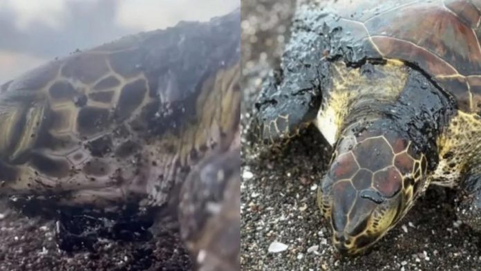 Rescatan a tortuga verde con hidrocarburos en playas de Veracruz
