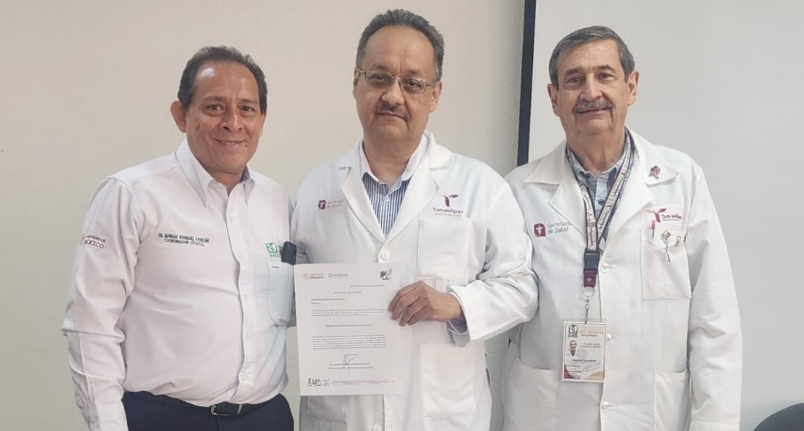 NUEVO LAREDO.-El Dr. Marggit Rodríguez, Coordinador Estatal del IMSS Bienestar entregó el nombramiento como nuevo Director del Hospital General de Nuevo Laredo al Dr. Francisco Ochoa; como Subdirector médico asumió el cargo el Dr. Juan Manuel Salazar, y como Administrador al CP Alejandro Páez Miranda.