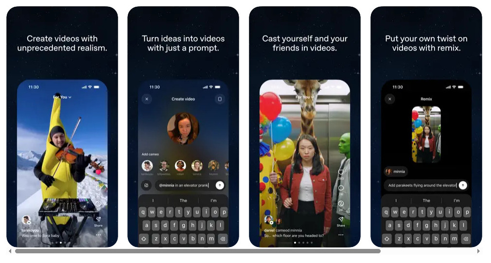 Entre sus funciones principales destaca “Cameos”, una herramienta que permite a los usuarios subir su imagen para aparecer en videos generados por la IA.