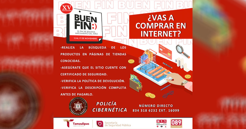 TAMAULIPAS.- La Guardia Estatal Cibernética exhortó a la población a reforzar sus medidas de seguridad durante el Buen Fin, a fin de prevenir fraudes y proteger su patrimonio.