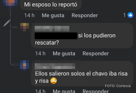 Una usuaria señaló que, al verlos ser arrastrados por el agua, reportaron los hechos a los cuerpos de rescate, pero ni siquiera fue necesario, ya que metros más adelante salieron solos y se retiraron soltando carcajadas.