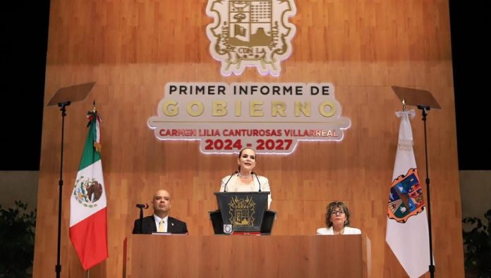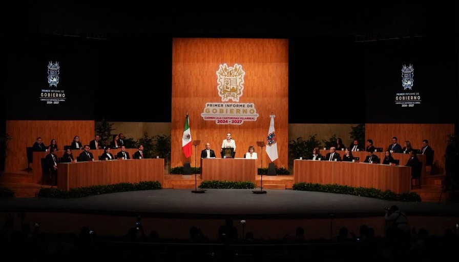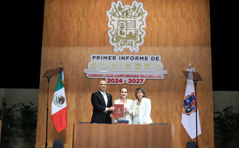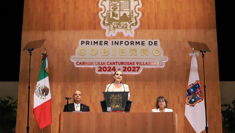 NUEVO LAREDO.-La alcaldesa Carmen Lilia Canturosas Villarreal rindió su Primer Informe de Gobierno del periodo 2024-2027 en el que destacó la consolidación de Nuevo Laredo como referente nacional en desarrollo municipal, servicios públicos de calidad, infraestructura estratégica y prosperidad compartida para todas las familias neolaredenses.