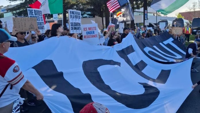 EEUU.- Miles de personas protestan contra ICE en las inmediaciones del estadio Levi’s de Santa Clara.