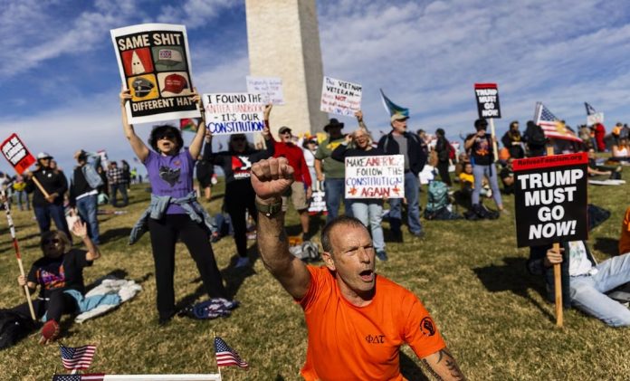 Asuntos como el cierre de gobierno de Estados Unidos, ya el más largo de la historia nacional, o las críticas a las políticas contra los migrantes han estado en el foco de las protestas.