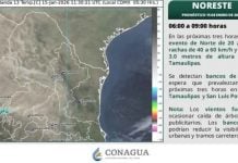 El evento de Norte seguirá presente, con rachas de 80 a 100 km/h en el istmo y golfo de Tehuantepec; rachas de 60 a 80 km/h en el litoral de Veracruz, y rachas de 40 a 60 km/h en las costas de Tamaulipas, Tabasco, Campeche, Yucatán y Quintana Roo.