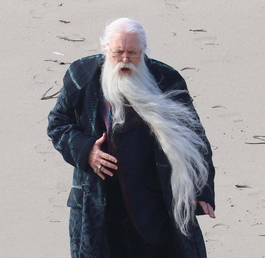 Las fotos inéditas, publicadas por la cuenta oficial Wizarding World Direct en la red social X, muestran a John Lithgow con una larga barba blanca, túnica azul plateada y la clásica expresión serena y sabia del emblemático director del Colegio Hogwarts.