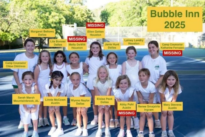 Hasta el momento, se han recuperado los cuerpos de 10 niñas: Margaret Bellows (8), Lila Bonner (9), Janie Hunt (9), Lainey Landry, Sarah Marsh (8), Linnie McCown (8), Wynne Naylor (8), Eloise Peck (9), Renée Smajstria (9) y María Stevens (8), además de la consejera Childress. Permanecen desaparecidas Molly DeWitt (9), Ellen Getten (8), Abby Pohl y Katherine Ferruzzo (19).