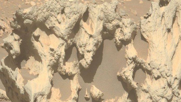 La NASA informó que este hallazgo ocurrió mientras este robot realizaba estudios en la zona conocida como Vernodden (un terreno marcado por rocas bajas y fragmentadas) en septiembre de este año. Entre dicho espacio, una pieza de 80 centímetros de diámetro, bautizada como “Phippsaksla”, que sobresalía por su forma pulida y elevada, completamente distinta al paisaje circundante, llamó la atención del rover.
