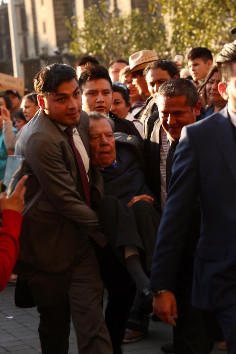 CIUDAD DE MÉXICO.- A su llegada a Palacio Nacional, el presidente de la Cámara de Diputados, Porfirio Muñoz Ledo se desvaneció y fue cargado por sus colaboradores, quienes lo auxiliaron.