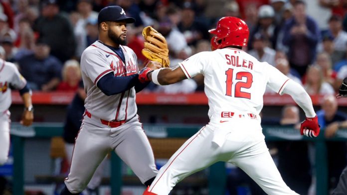 LOS ANGELES.- Un momento de tensión marcó el encuentro entre Los Angeles Angels y Atlanta Braves, luego de un altercado que terminó con golpes entre Jorge Soler y Reynaldo López. El incidente ocurrió en medio de una jugada que comenzó con un lanzamiento descontrolado y derivó en una confrontación directa entre ambos peloteros.