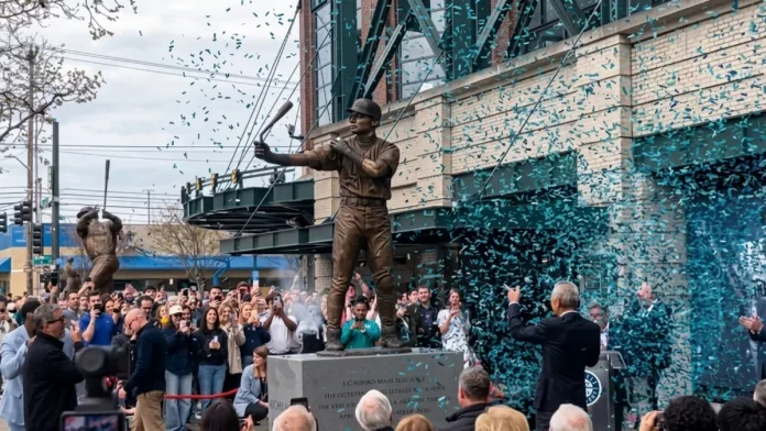 Griffey y Martínez acompañaron a Suzuki a las afueras del T-Mobile Park el viernes, y los tres retiraron juntos la lona que cubría la estatua.