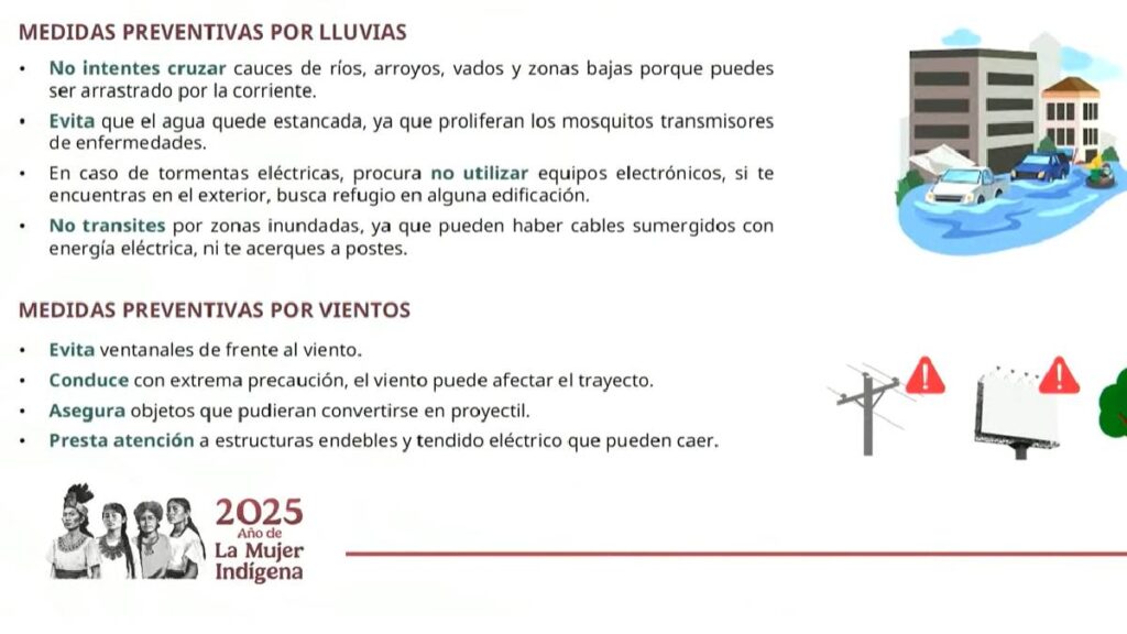 El SMN pidió a la población tomar precauciones ante lluvias, vientos fuertes y descensos de temperatura. Las recomendaciones son:
