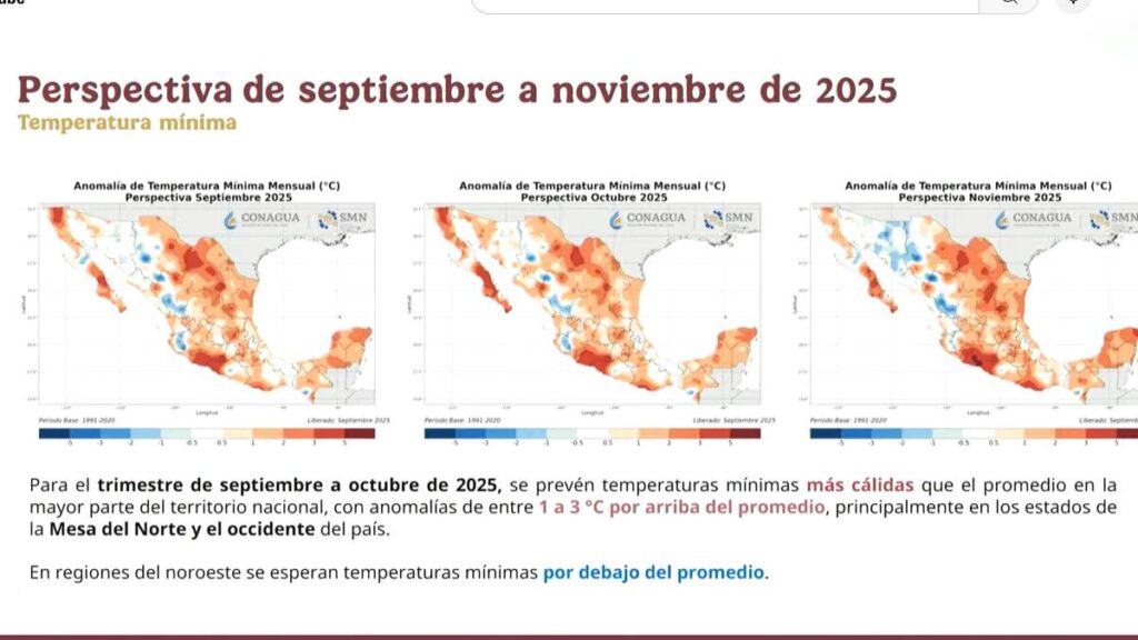 El coordinador del SMN también advirtió que la tendencia de temperaturas mínimas más cálidas en invierno continuará este año: “En los últimos años esta tendencia ha sido que la mayor parte de México tiene temperaturas por arriba del promedio en las temperaturas mínimas”.
