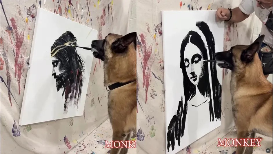 Monkey es un perrito como ningún otro. El can, de raza pastor belga malinois y seis años de edad, ha sido entrenado por años para convertirse en un talentoso pintor que usa su hocico para crear verdaderas obras de arte.