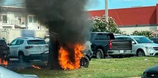 LAREDO TEXAS.- Un auto de lujo se impactó contra un árbol, explotó y fue consumido por el fuego durante este fin de semana, en Laredo, Texas.