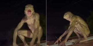 Captan supuesto híbrido entre humano y rana gritando en el techo...